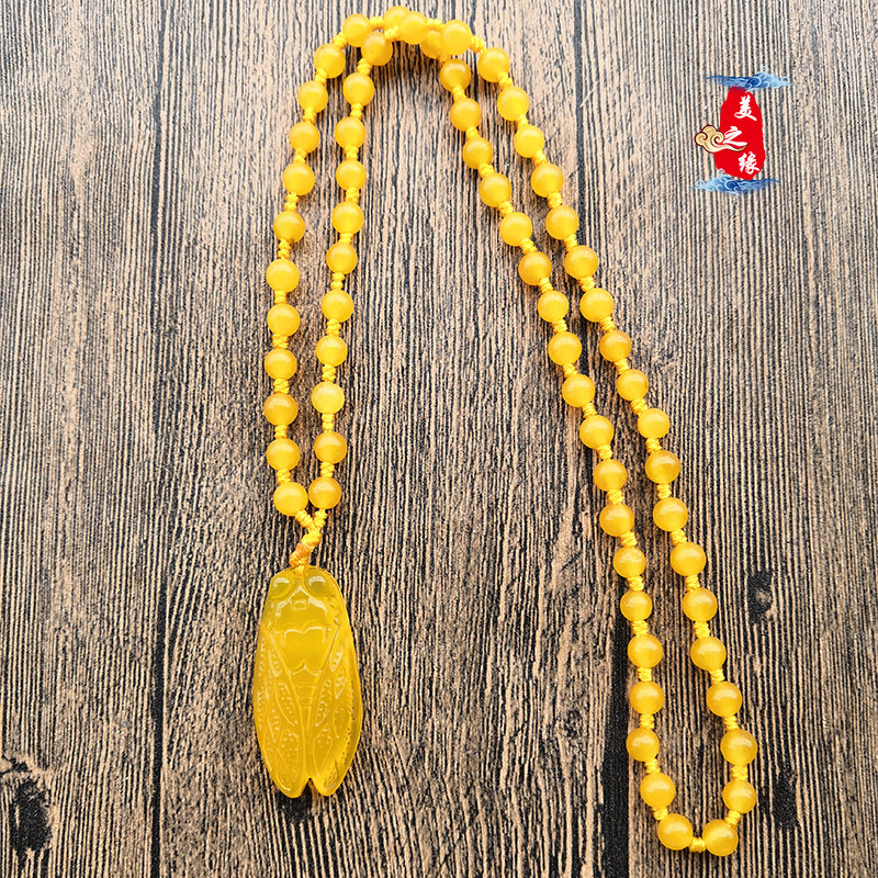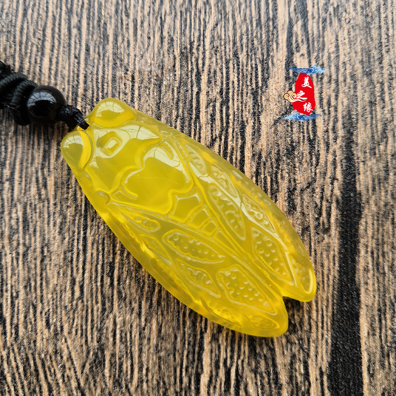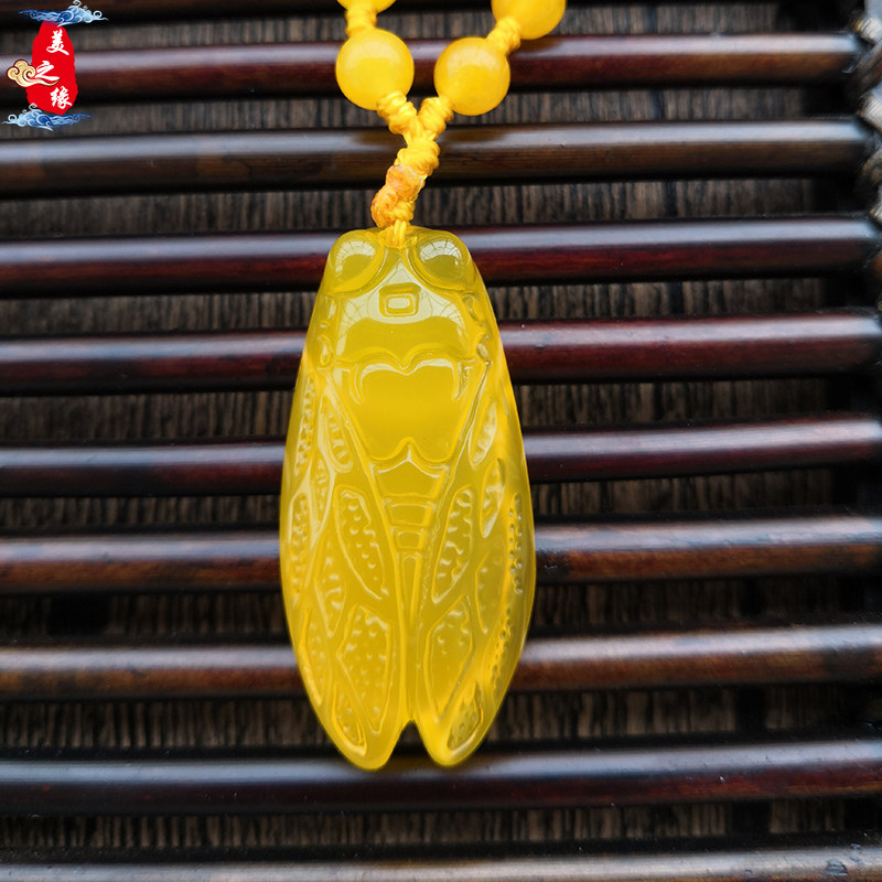 Pure natural ice species chalcedony cicada pendant yellow agate gold cicada pendant for men and women to attract money and ward off evil jade pendant