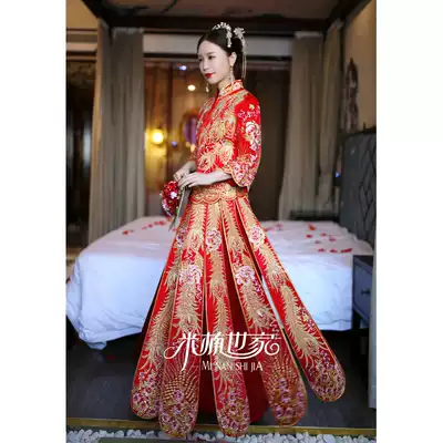 New autumn dragon and phoenix hanging emperor size Wufu Xiuhe suit Malay suit diamond wedding dress Chinese long-sleeved 2021 cheongsam for pregnant women