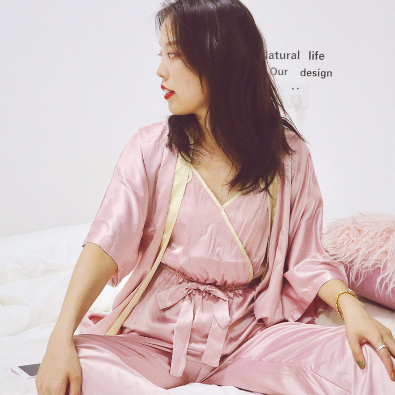 Customized PJ peach home simulation silk temperament backless camisole home service shorts nightgown pajamas set Western style