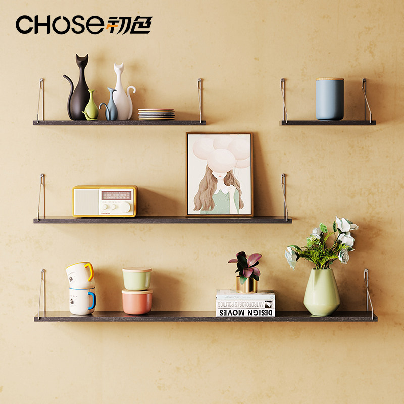 Solid wood wall shelf punch-free hanging wall Living room TV wall decoration Bedroom wall bookshelf word partition
