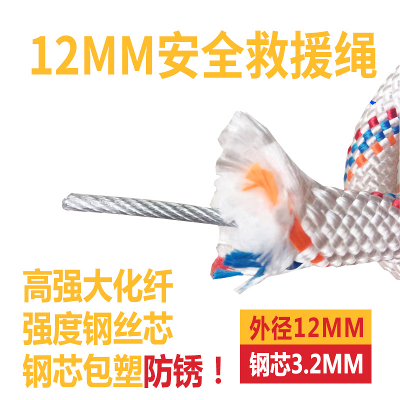 Plus Coarse 12MM Wire Core Safety Fire Home Escape Rescue Rope Nylon Outdoor Climbing Insurance Rope