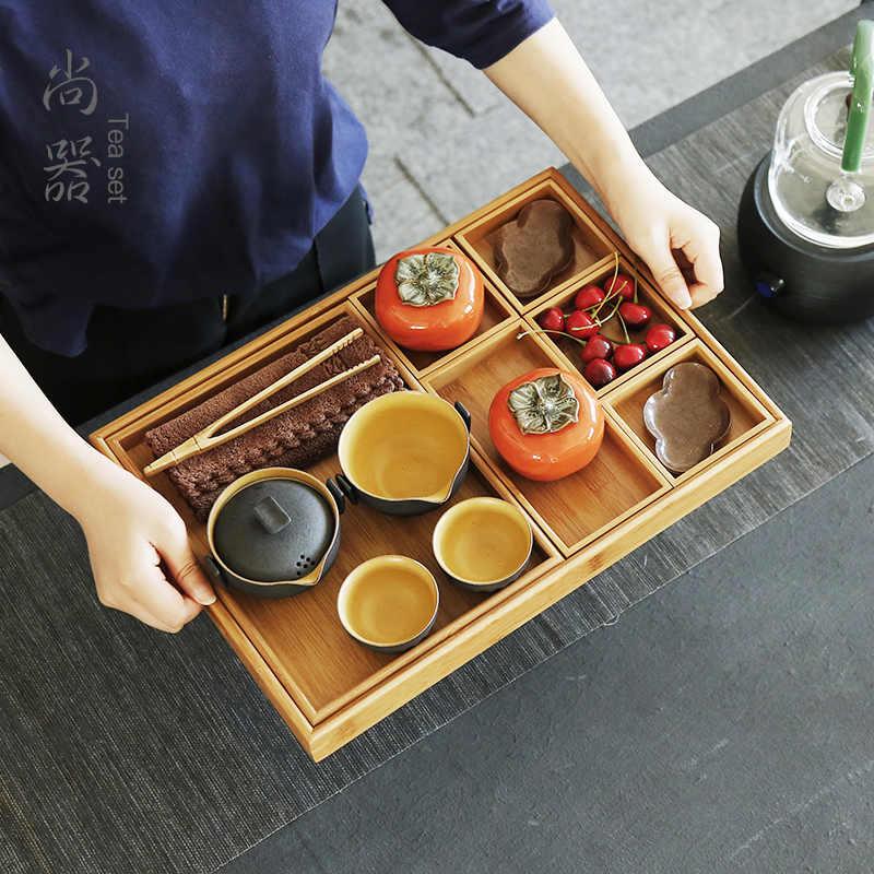 Shaninstrumental Day Style Flattery Tea Tray Tea Set Tea Set Group Home Rectangular Bamboo Minima Small Nursery Tray Tea Cup Containing box