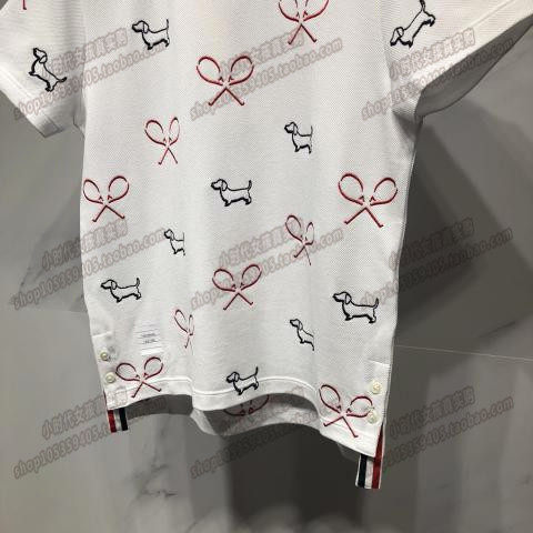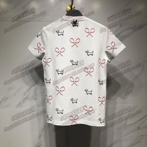 (small times France) thom browne18 spring and summer embroidery round collar short sleeve TB pattern puppy bat T-shirt