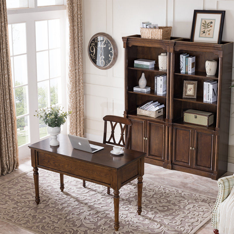 American-style solid wood bookcase desk combination European-style bookshelf study storage cabinet combination with door bookcase study furniture