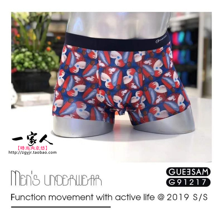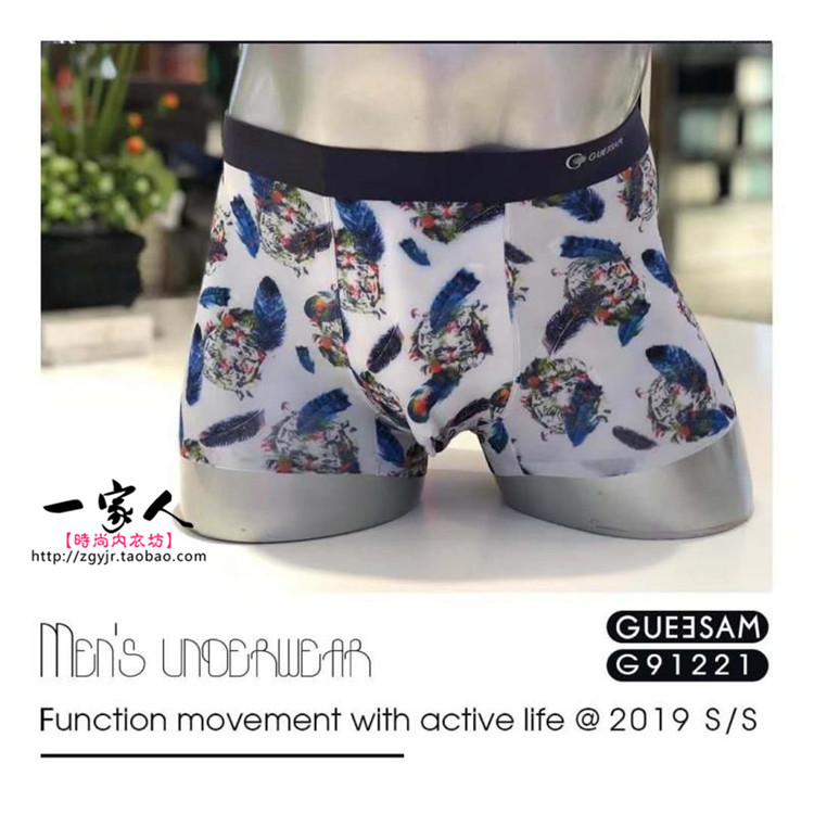 Summer new GUEESAN GURESSEN G81220 men's scarred ice silk four-corner underpants real silk printed pants head