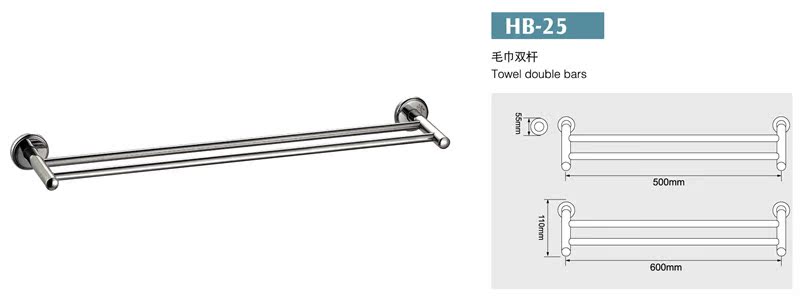 Golden Jet Bathroom Tooling Punching CM Bath Towel Rack Double Bath Towels Hanging home 304 Stainless Steel Towel Double HB-25
