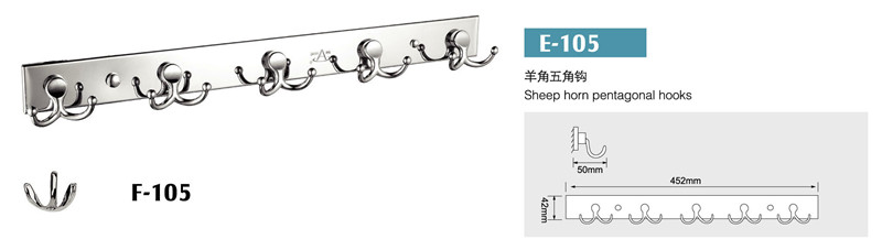 Jinhang bathroom clothes hook door wall hanging punch door rear coat hook household 304 stainless steel five coat hook E-105