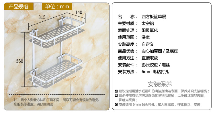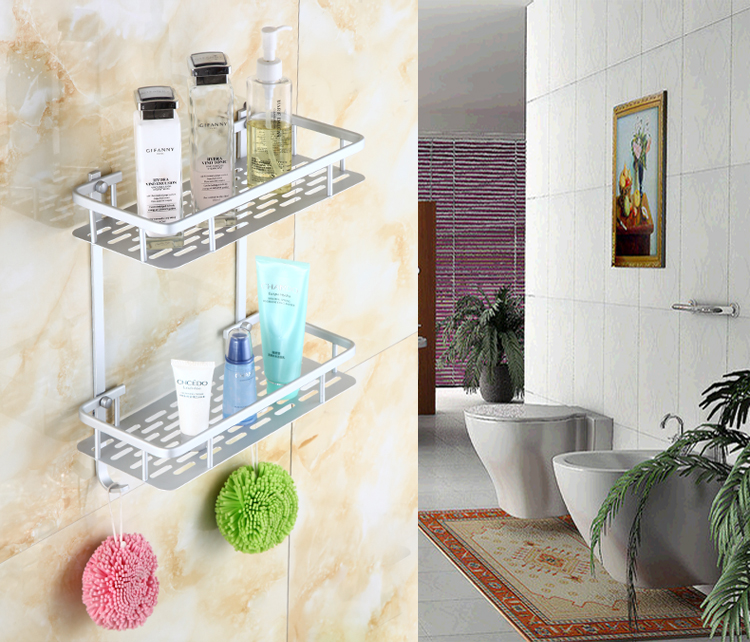 Bathroom pendant panel type double storage perforated embedded guardrail space aluminum rectangular shelf X2518