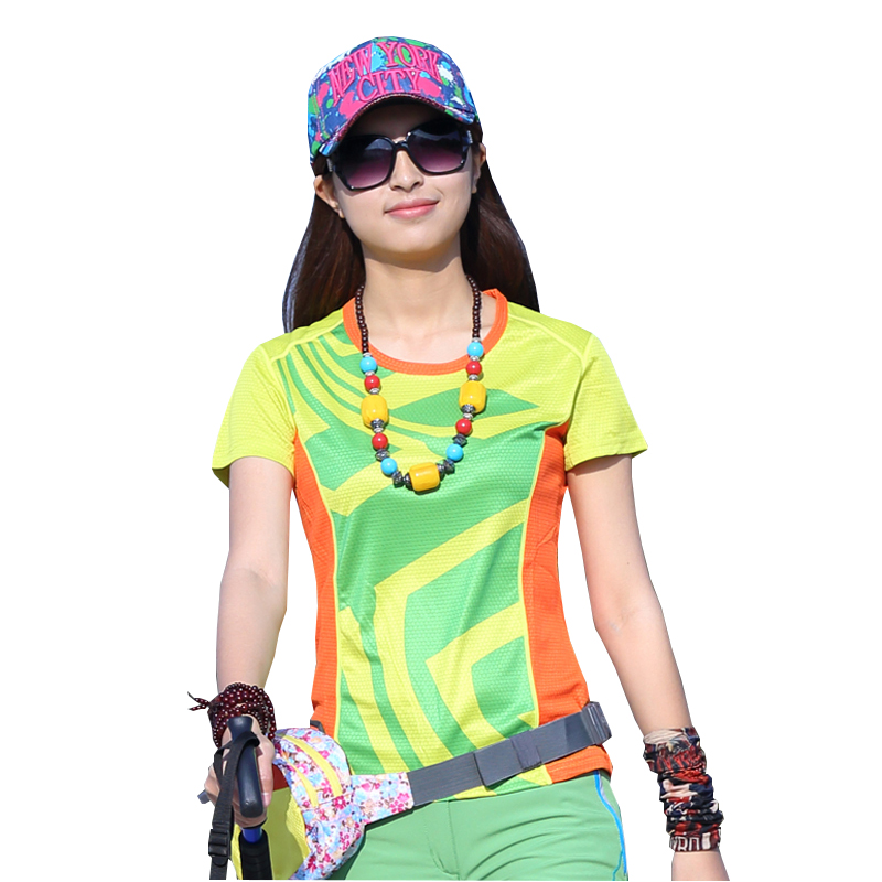 Outdoor short sleeve dry dress T-shirt woman round collar and skinny sweat and breathable fast dry sweater summer