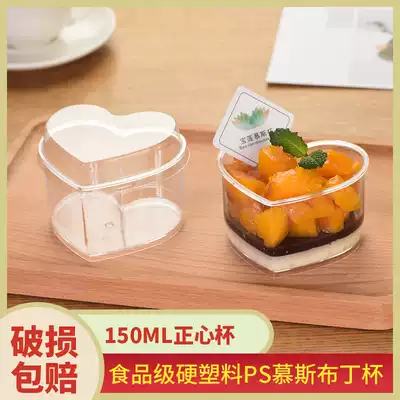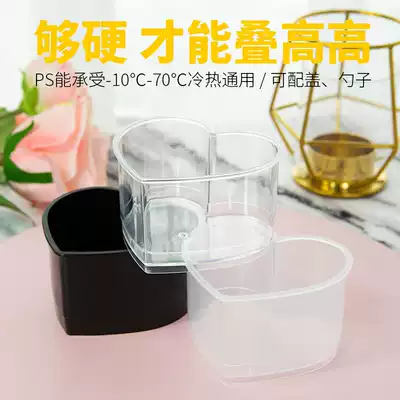 Thickened heart-shaped roasted mousse cup Wood Bran pudding cup jelly cup ice cream cup plastic cup disposable with lid