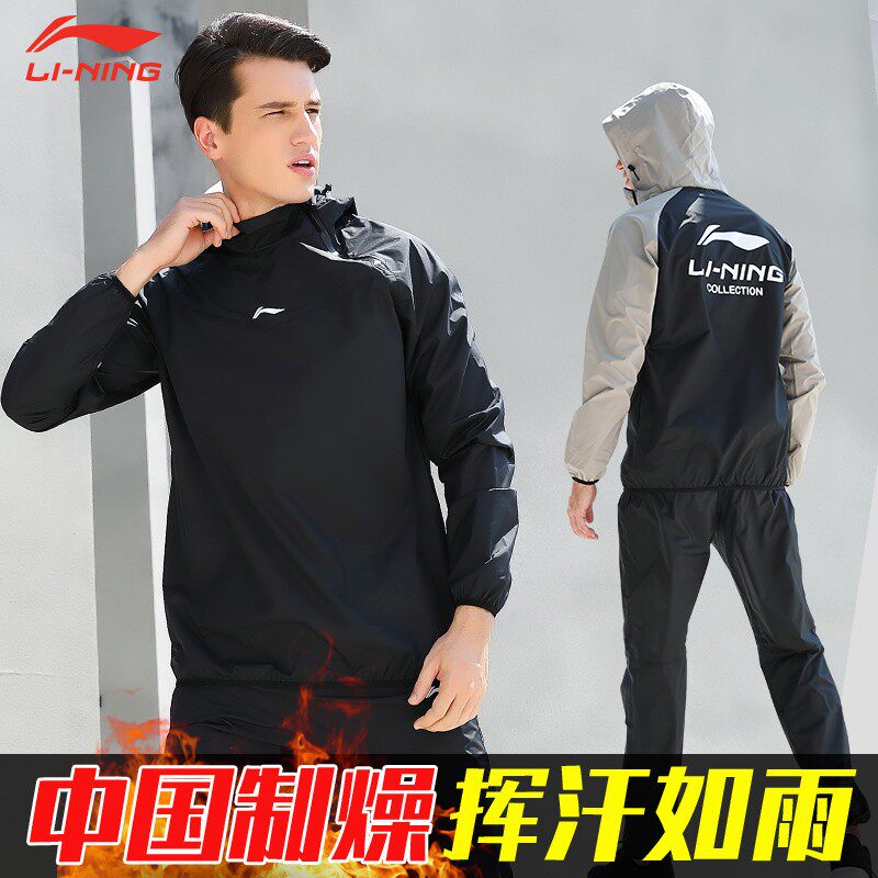 Li Ning sweat burst sweat clothes men's set fitness clothes sweat clothes men sports running quick dry short sleeve sweat sweat clothes winter