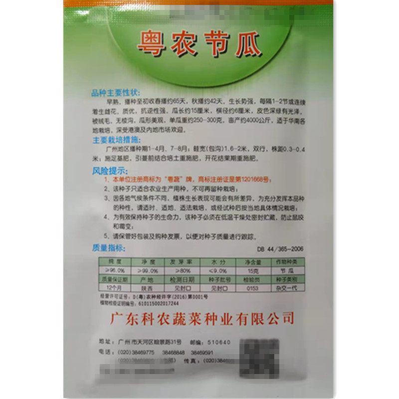 Cantonese-Vegetable Cards Cantonese Farming Festival Melon Seeds 15 gr Original clothes of Guangdong Provincial Academy of Agricultural Sciences Festival Guacolong Oita Vegetable Seeds