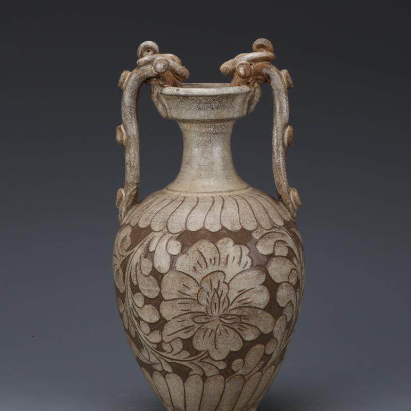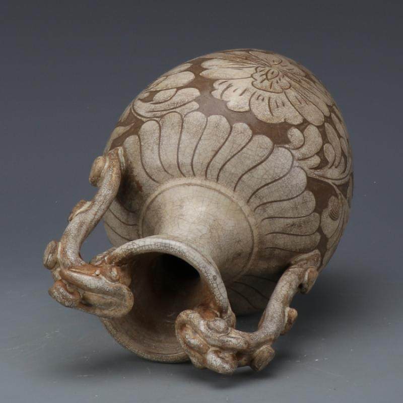 The Song Dynasty Magnetic State Kilns Carved Double Dragon Bottle Antique Old Goods Ancient Play Old Goods Folk Collection Antique made of old porcelain