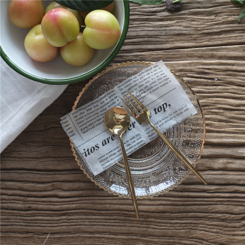Clear Barn Special Price Chic Coffee Hall Han Style 304 Stainless Steel Golden Mini Sweet Fruit Fork Spoon