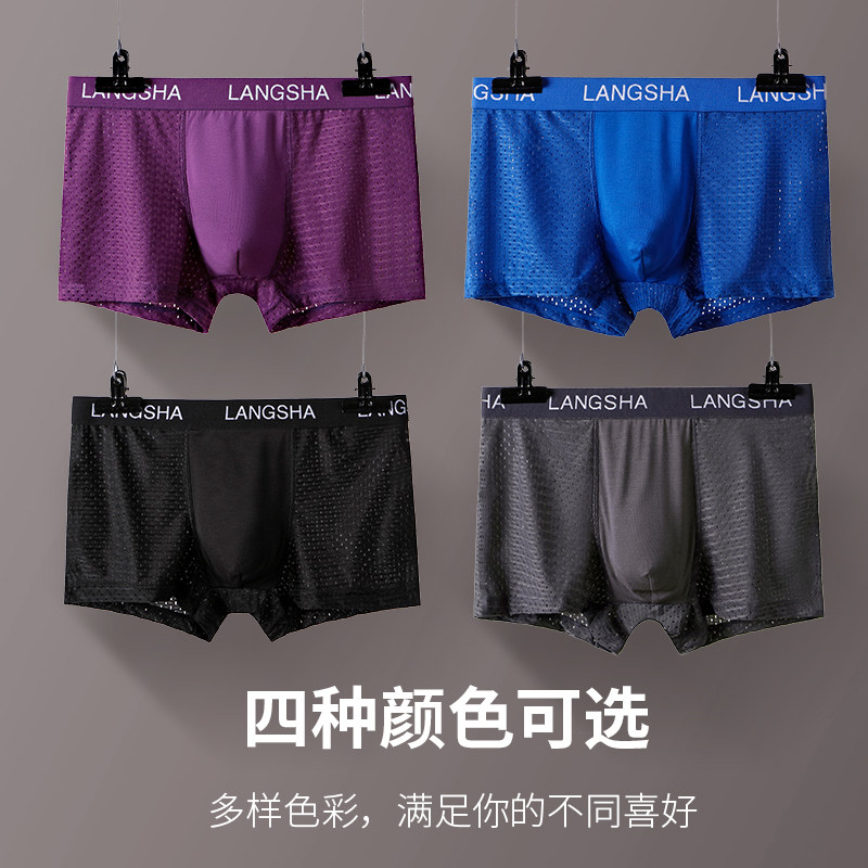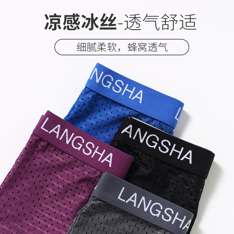 Langsha men's underwear men's flat pants ice screen eye spring and summer breathable thin Modell four-corner shorts tide pants