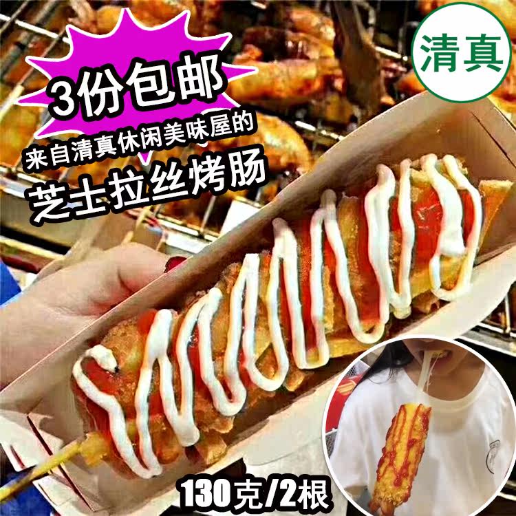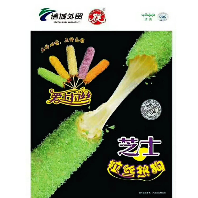 Halal red cheese brushed hot dog stick Shredded sausage Fried crispy cheese grilled sausage color cheese hot dog stick