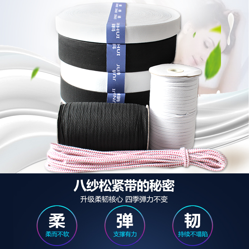 Black white fine flat elastic band wide elastic rope Children's pants waist rubber band pants head belt used clothing accessories