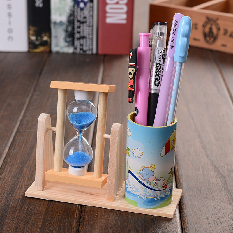 Teacher's Day gifts for teachers, men and women, classmates, girlfriends, cute cartoon color rotating hourglass pen holder, cartoon pattern