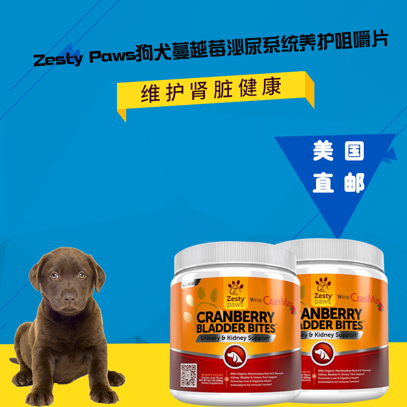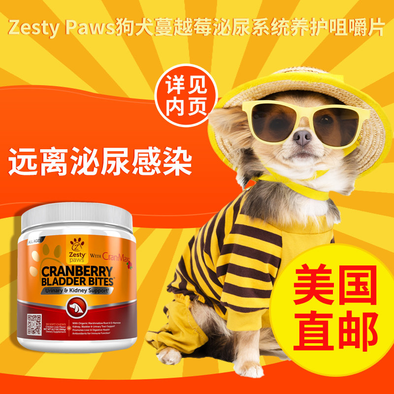 U.S. Direct Mail Zesty Paws Canine Cranberry Urinary System Nutritional Health Chewable Tablets 90 Capsules