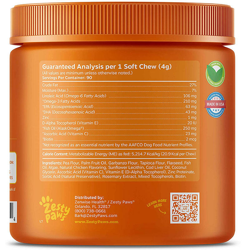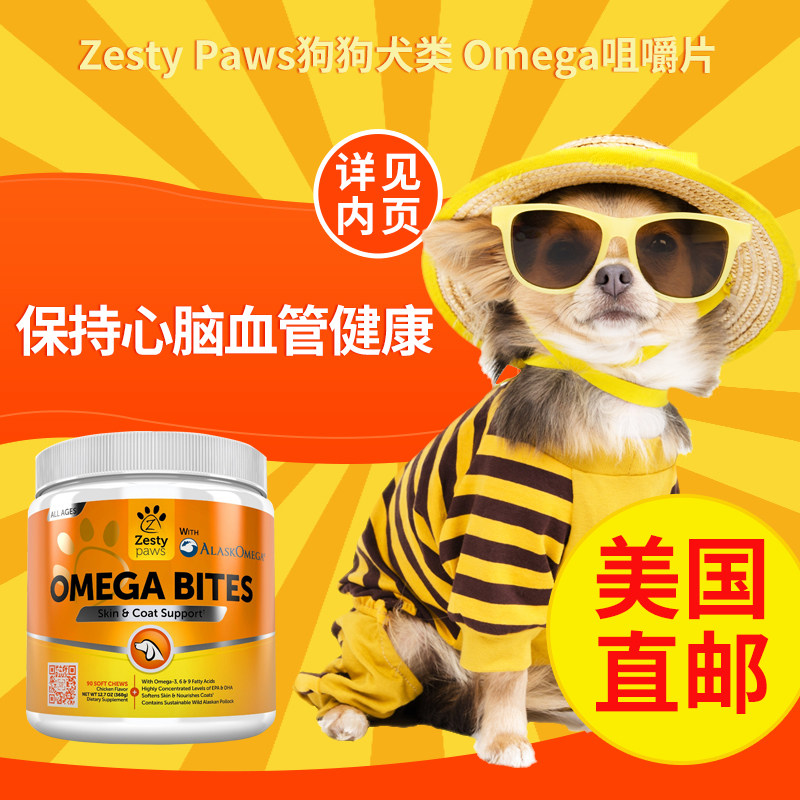US direct mail Zesty Paws dogs with Omega Omega hair nutrition chewable tablets 90 capsules