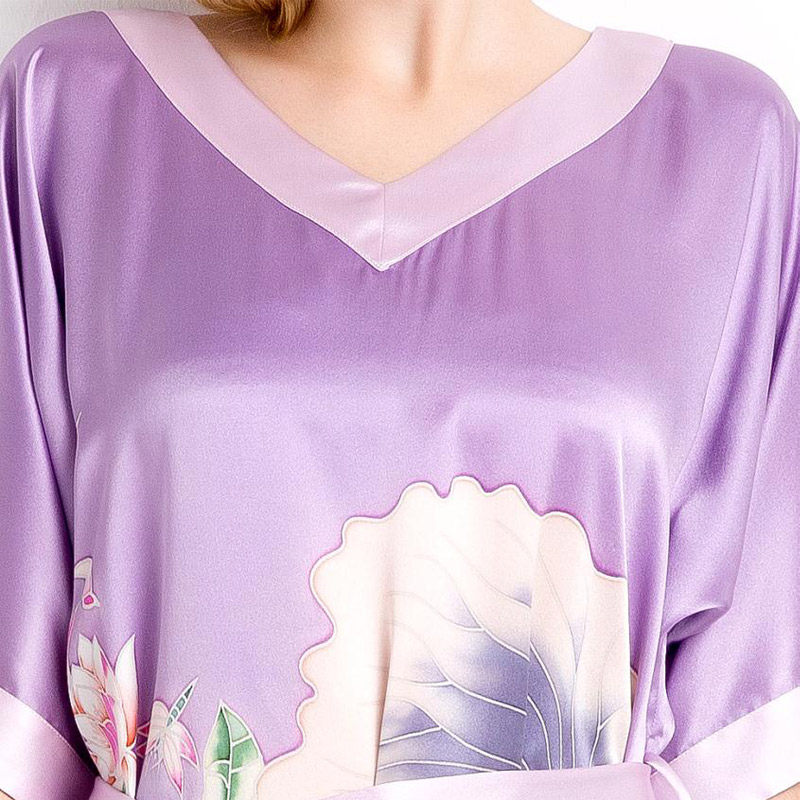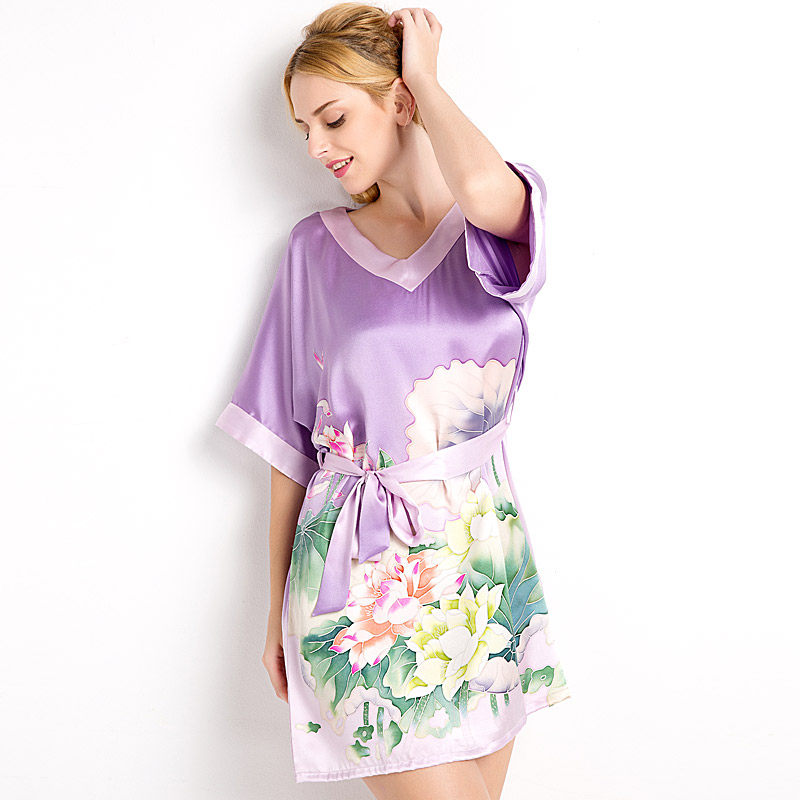True Silk Short Sleeve Sleeping Skirt Woman Summer Intensify version Loose Sleeping Clothes Heavy-pound mulberry silk printed silk Home Residence Clothes-Taobao