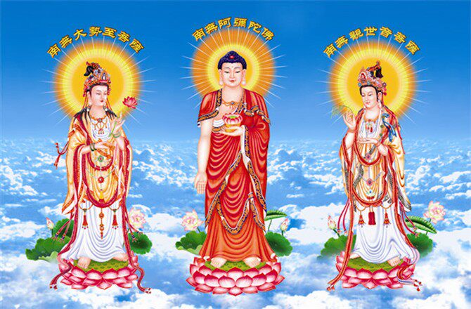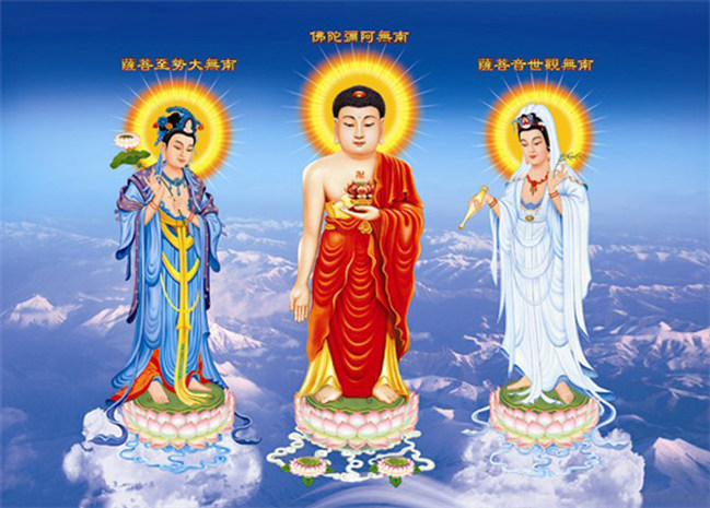 Western Sansheng 3D three-dimensional painting Amitabha Buddha Avalokitesvara Buddha raster three-dimensional painting 120*80 custom a variety of optional
