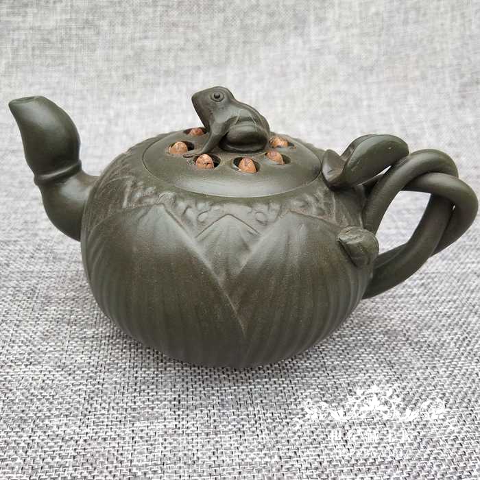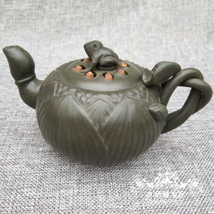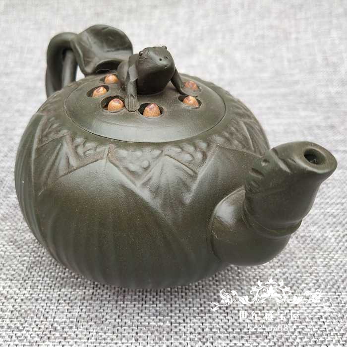 Hot selling self-use tea pot Home decoration craft gift decoration original mine green clay Yixing frog lotus seed purple sand pot ornaments