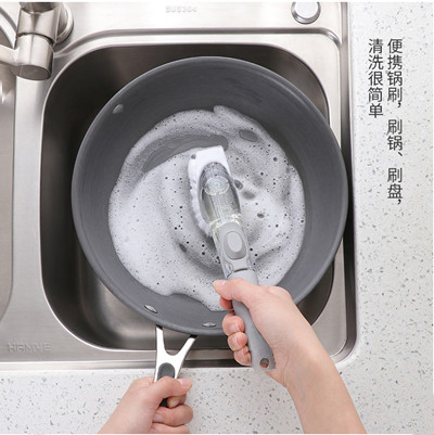 Kitchen brush pot artifact Pot brush Non-stick oil bristle long handle cleaning brush Dish washing sponge automatic liquid decontamination