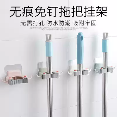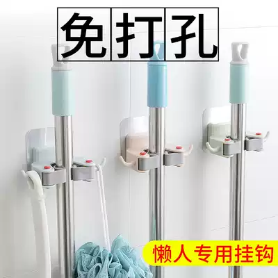 Punch-free, nail-free, seamless hanging mop broom, strong adhesive, multi-purpose wall-mounted powder room storage, strong load-bearing pylons