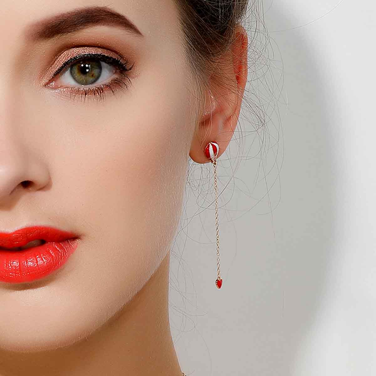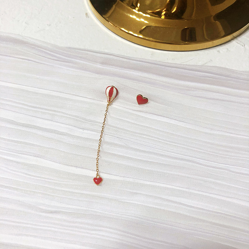 Earrings suitable for round faces, hot air balloon, ear needles, thin and asymmetrical female long version of red earrings, 925 silver temperament