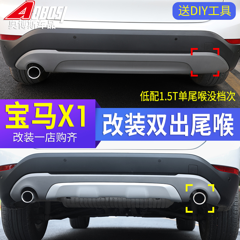 BMW new x1 modified exhaust pipe double tail throat front and rear bumper decoration fake change accessories 19 x1 double exhaust