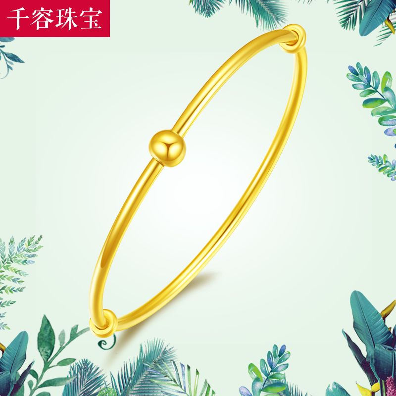 3D hardgold gold transfer bead bracelet Guifu Bracelet Bracelet 999 can be pierced bead gold bracelet