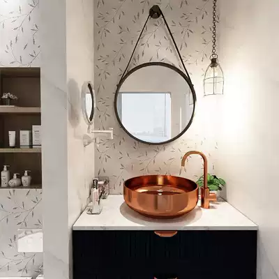 Nordic upper basin round washbasin basin modern art light luxury full Copper Basin household dressing room wash basin