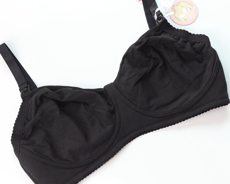 Foreign trade nursing bra without steel rim pure cotton ultra-thin section gathered full cup pregnancy maternity underwear black white