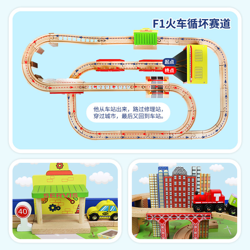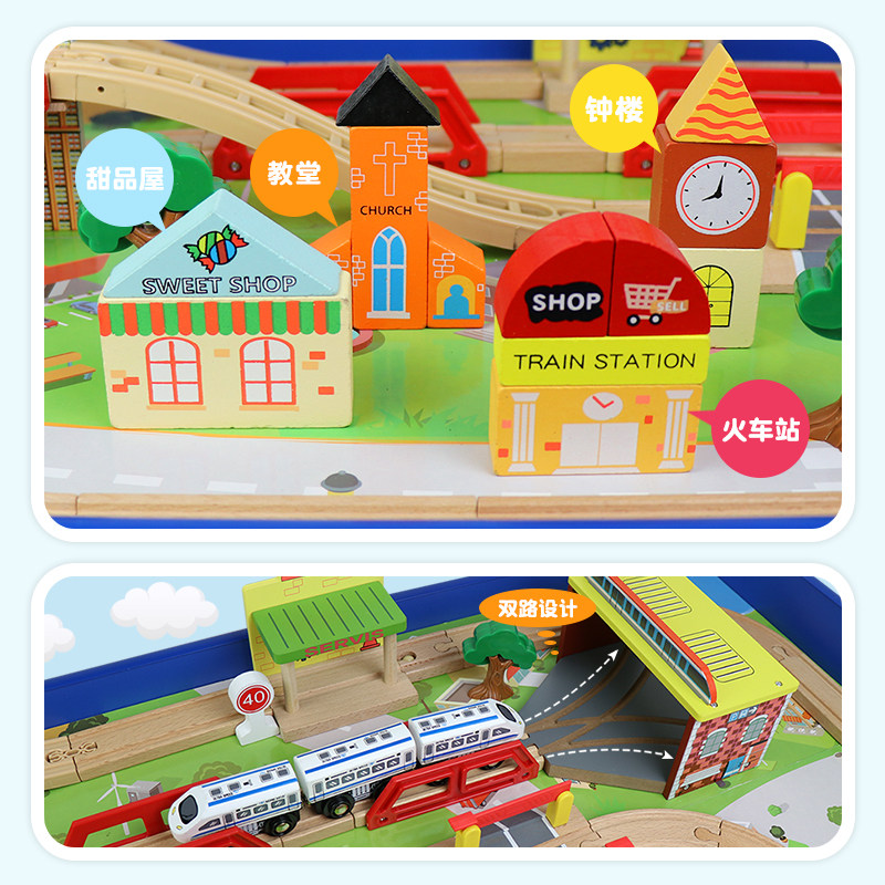 EDWONE high-speed rail machine room S-class wooden track train game table Children's building block toy table