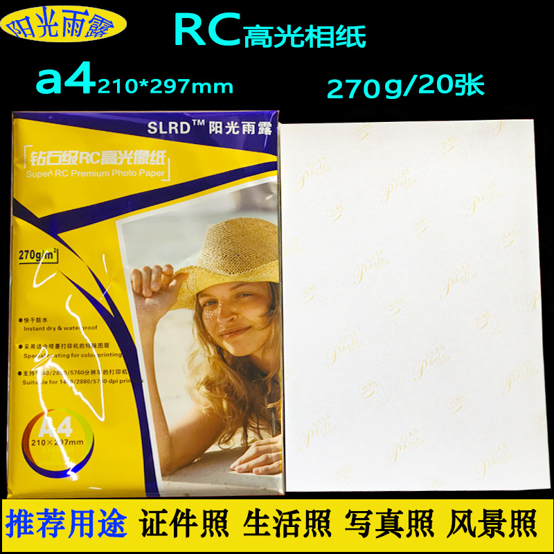 270g RC high-gloss back-print photo paper A4*20270g RC high-gloss back-print photo paper 4R*100270g RC high-gloss back-print photo paper 5R*100270g RC high
