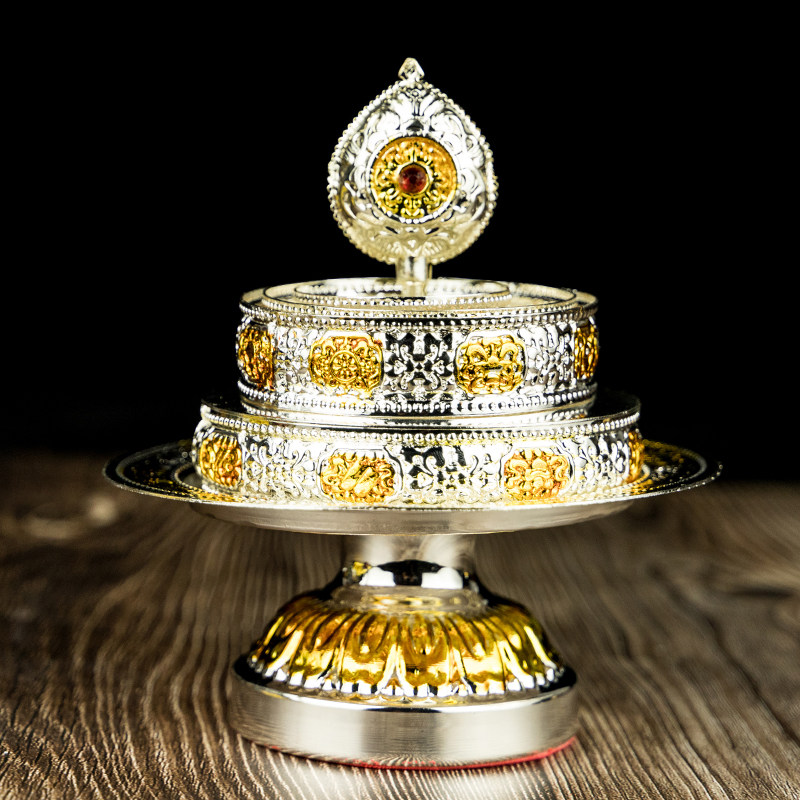 Tibetan Dharma Instrument Two-color eight auspicious manza pan mancha romanda disc with a tray trumpet