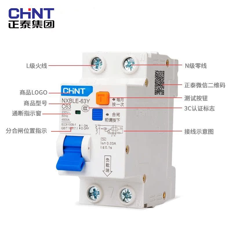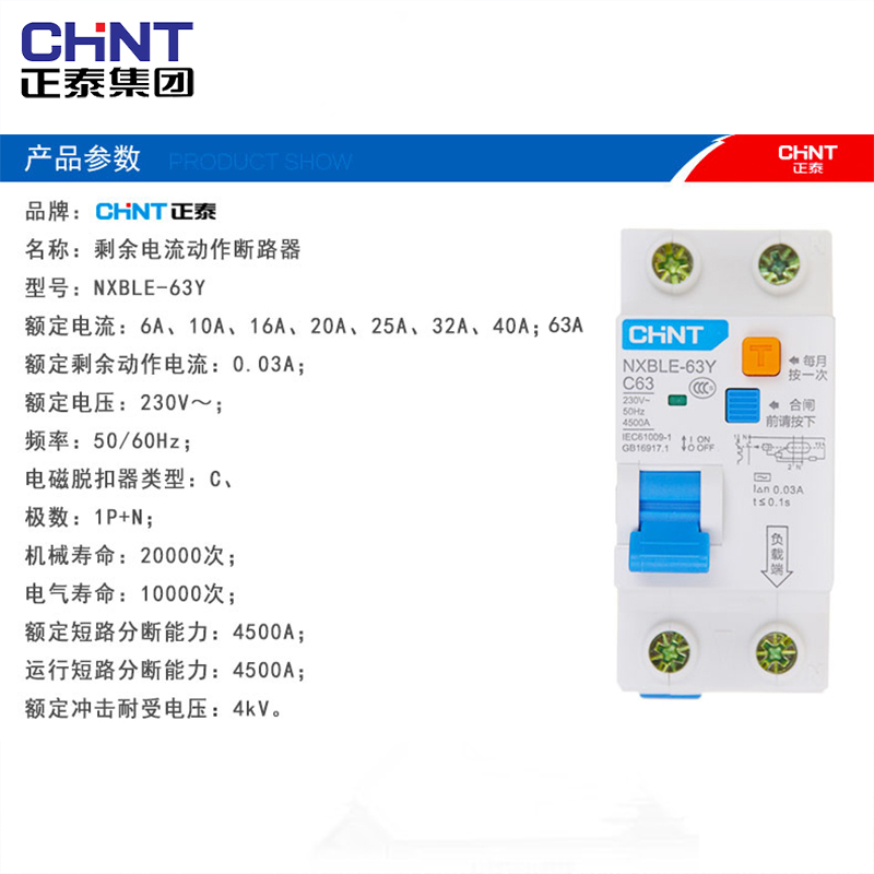 Chint air switch with leakage protector NXBLE-63Y household 32a leakage protection open 1P N two 220V