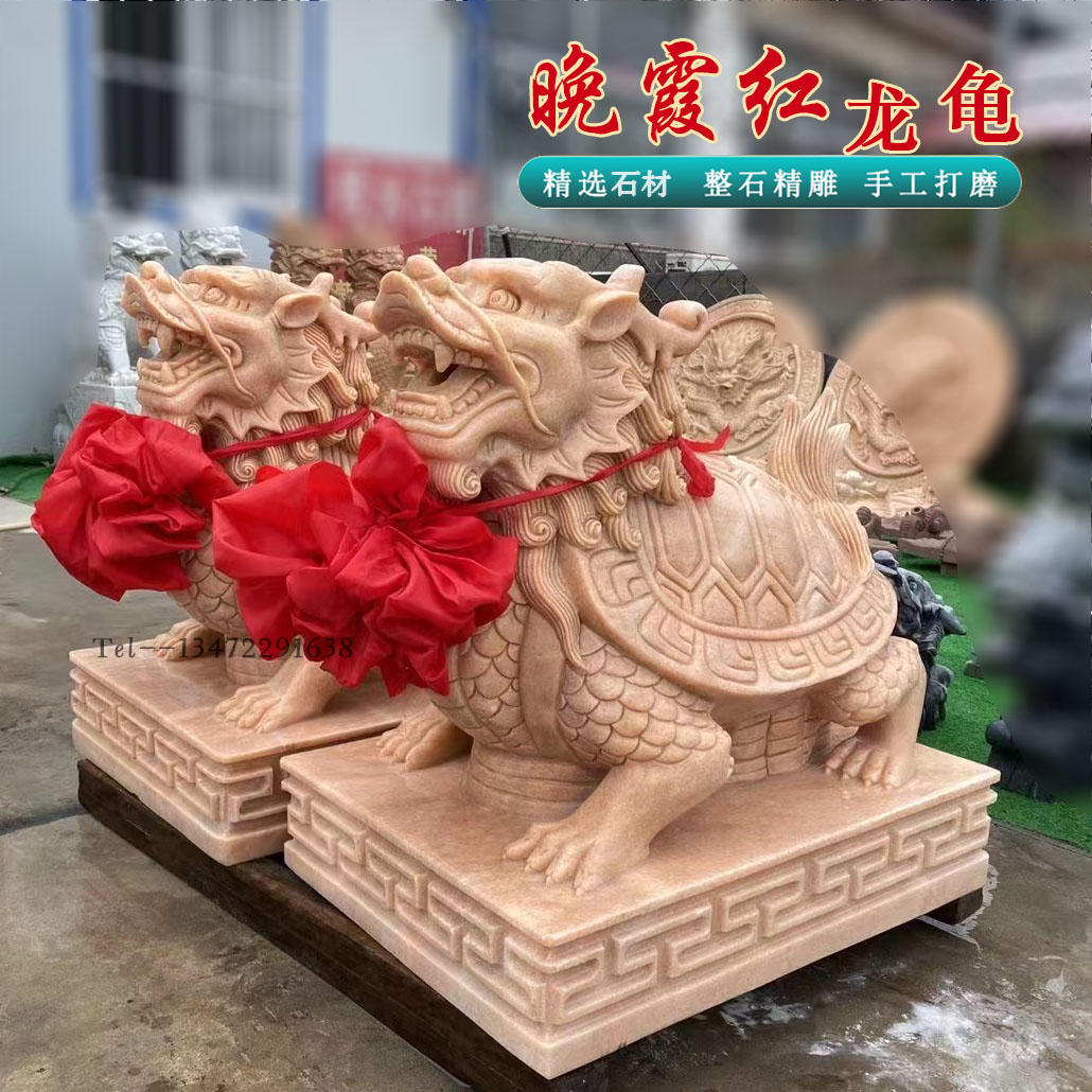 Stone carving water spray turtle lucky dragon head turtle ornament money turtle fish pond garden decoration natural bluestone mother and child turtle Chinese style