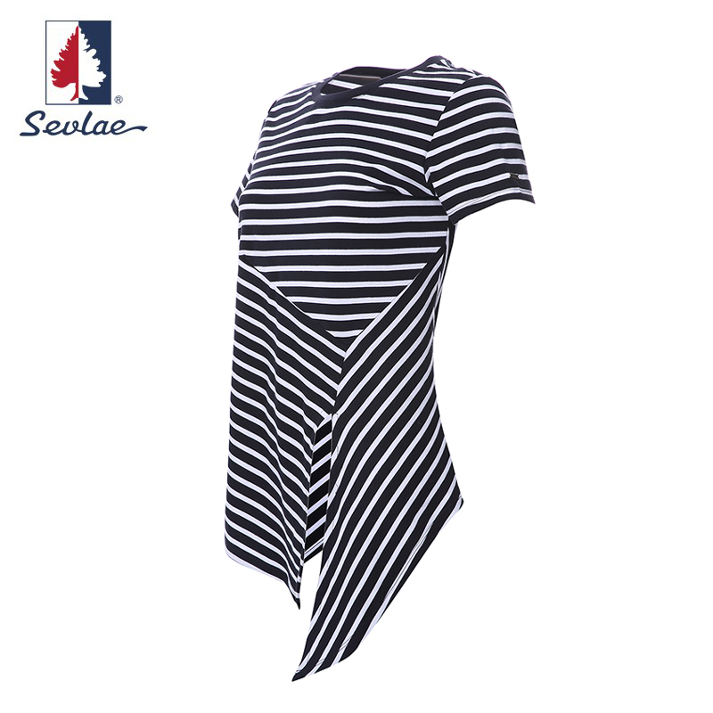SEVLAE Saint Fry fashion summer short-sleeved design sense female niche striped temperament T-shirt F122884577