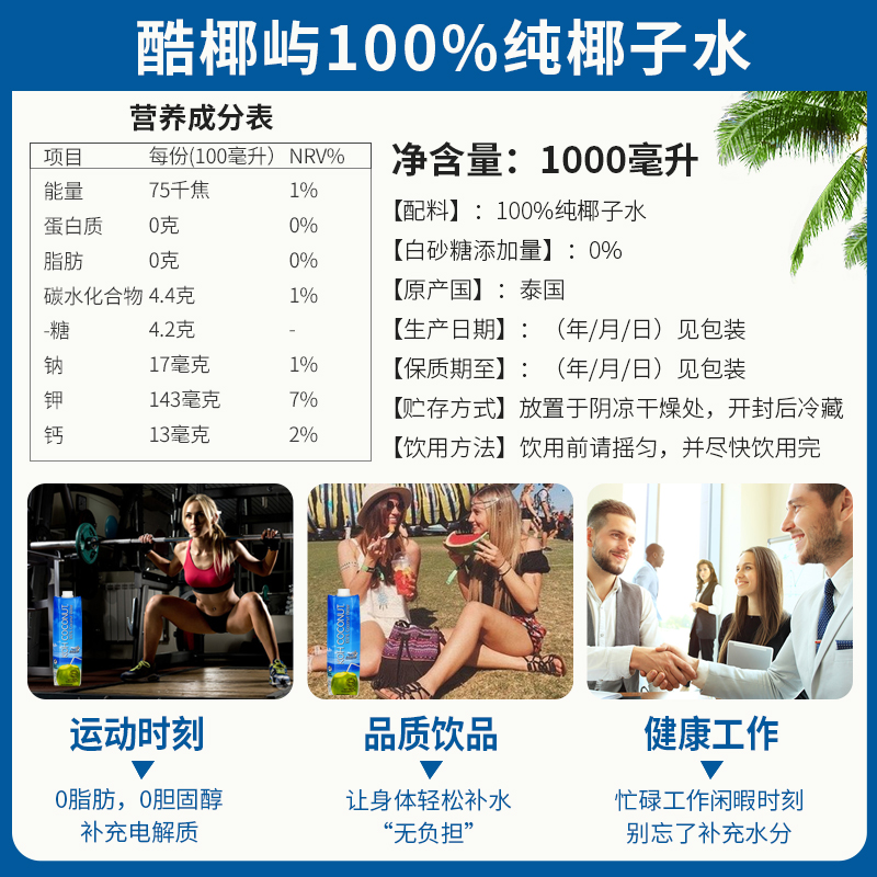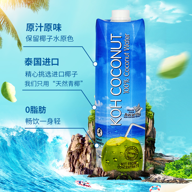 Coconut water Thailand imported cool coconut island koh pure coconut water pregnant women 1l*2 bottles of juice drink NFC