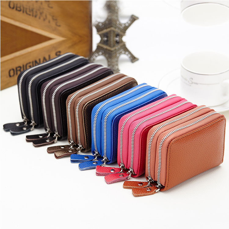Multifunctional male and female genuine double organ card pack double zipper large capacity multi-card cow leather change wallet