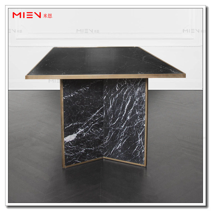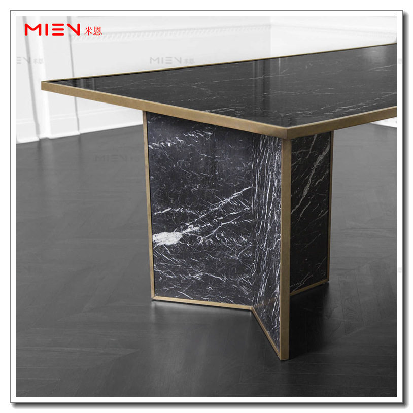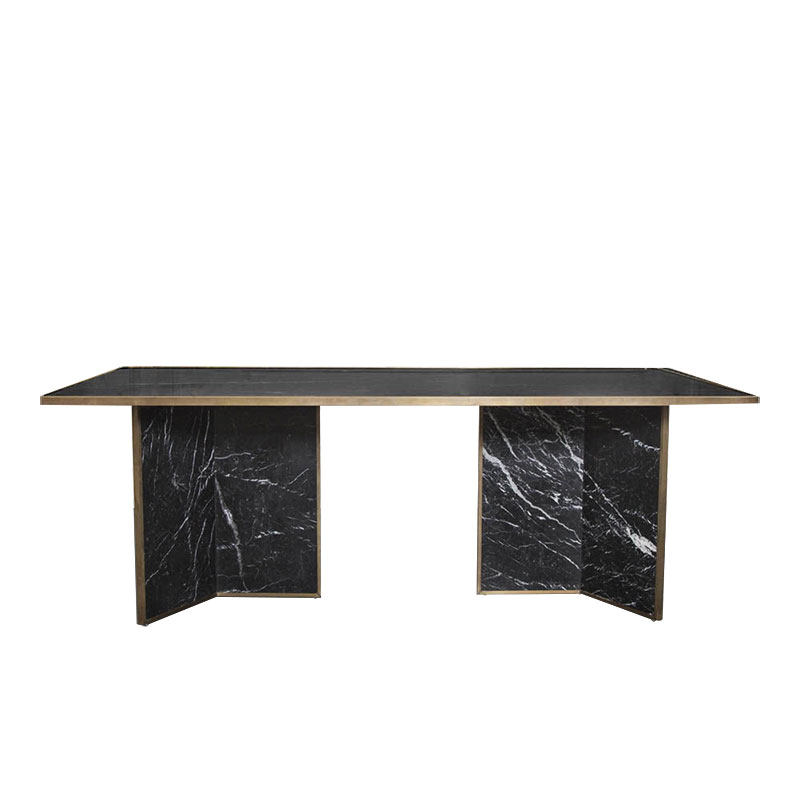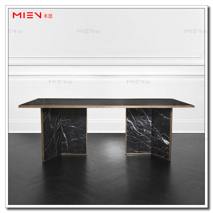 Modern minimalist Nordic light and luxurious stainless steel table small family home marble face metal feet rectangular table