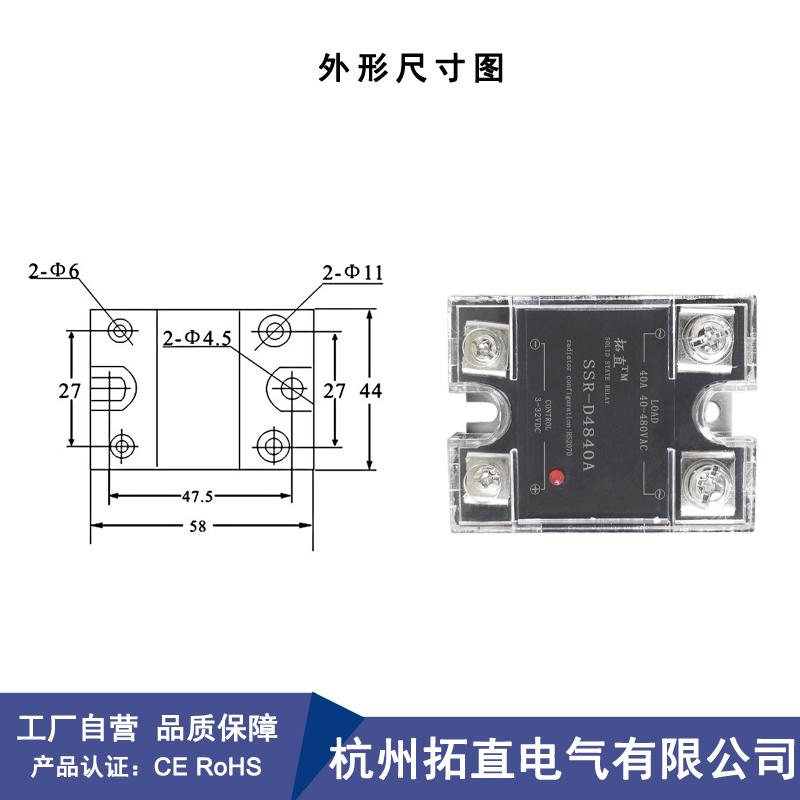 Single solid state SSR-D4840ASSR-D4840A with radiator HS2070SSR-D4840A with radiator HS6075