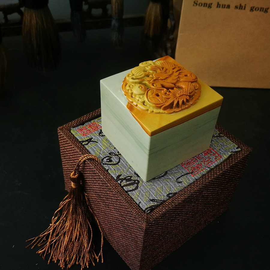 Seal stone pine flower stone Rough Old pit Seal carving Calligraphy Frozen jade engraving seal material Painting and calligraphy Natural pretty color rough seal