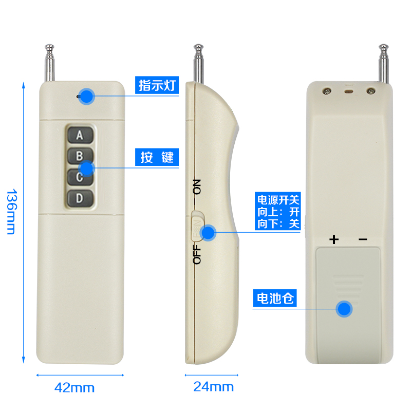 9V battery (single-beat-no) 4-key remote control (single-beat-not-developed) 9V charging lithium battery