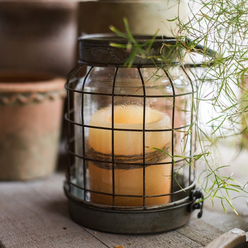 Vintage wrought iron candle typhoon lamp small lantern decorative ornament flower garden miscellaneous goods ZAKKA American
