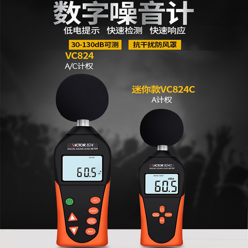 VICTOR Triumph Instrument VC824C Noise Meter Industrial Grade High Precision Handheld Sound Level Measurement Noise Decibel Meter