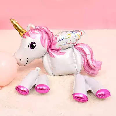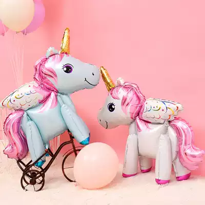 First birthday set party unicorn animal balloon decoration layout boomerang supplies 3d three-dimensional horse shape