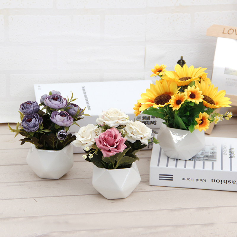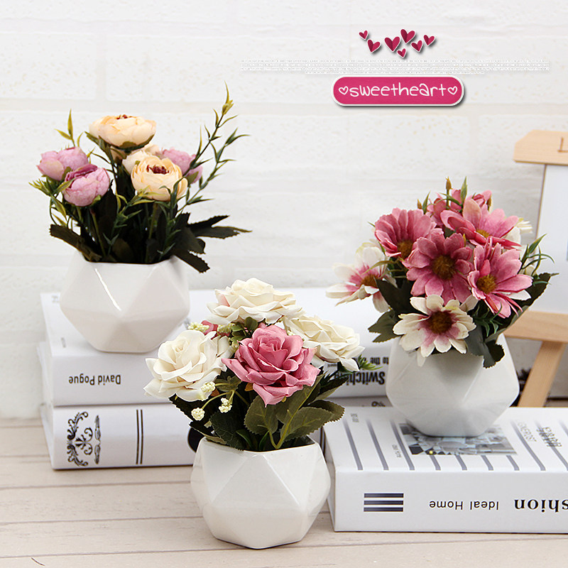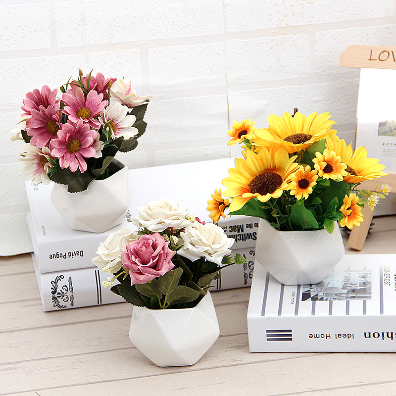 Home Clothing Home Decoration Living Room Office Exhibition Hall Dining Hall Dining Room Xuan Guan Decoration Ceramic Flower Pot Swinging Pieces Fake Flowers Potted Flowers emulated flowers